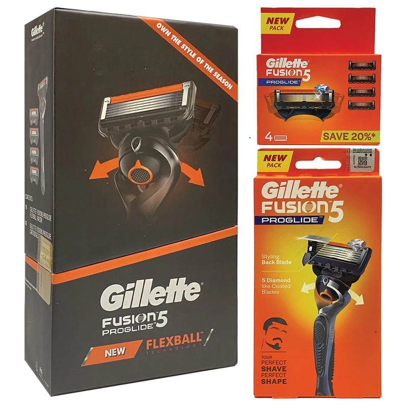 גילט פיוזן פרוגלייד 5להבים מארז – ידית+סכין + 4סכינים / Gillette Fusion Proglide Combo 1 Razor + 4s Cart