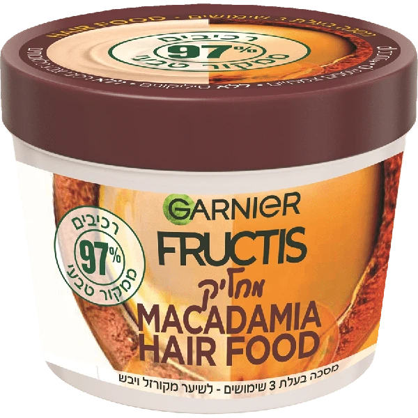 גרנייה פרוקטיס הירפוד מסכה מקדמיה מכילה שמן מקדמיה, מרכיב טבעי עשיר בחומצות שומן חיוניות המסייעות להזנת השיער מבפנים. שמן המקדמיה ידוע בתכונותיו המרככות והמזינות, המסייעות לשיקום השיער היבש והפגום. שימוש במסכה זו מעניק לשיער לחות עמוקה, רכות מדהימה וברק טבעי.