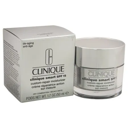 ה- Clinique Smart Custom-Repair Moisturizer SPF 15 (Dry Combination) הוא קרם לחות חכם המותאם במיוחד לעור משולב-יבש. הוא מעניק לעור לחות עמוקה ומסייע בשיקום הנזקים הנגרמים על ידי גורמים סביבתיים. הקרם מכיל SPF 15, המגן על העור מפני קרני השמש המזיקות, ובכך מסייע במניעת הזדקנות מוקדמת ונזקי שמש.
